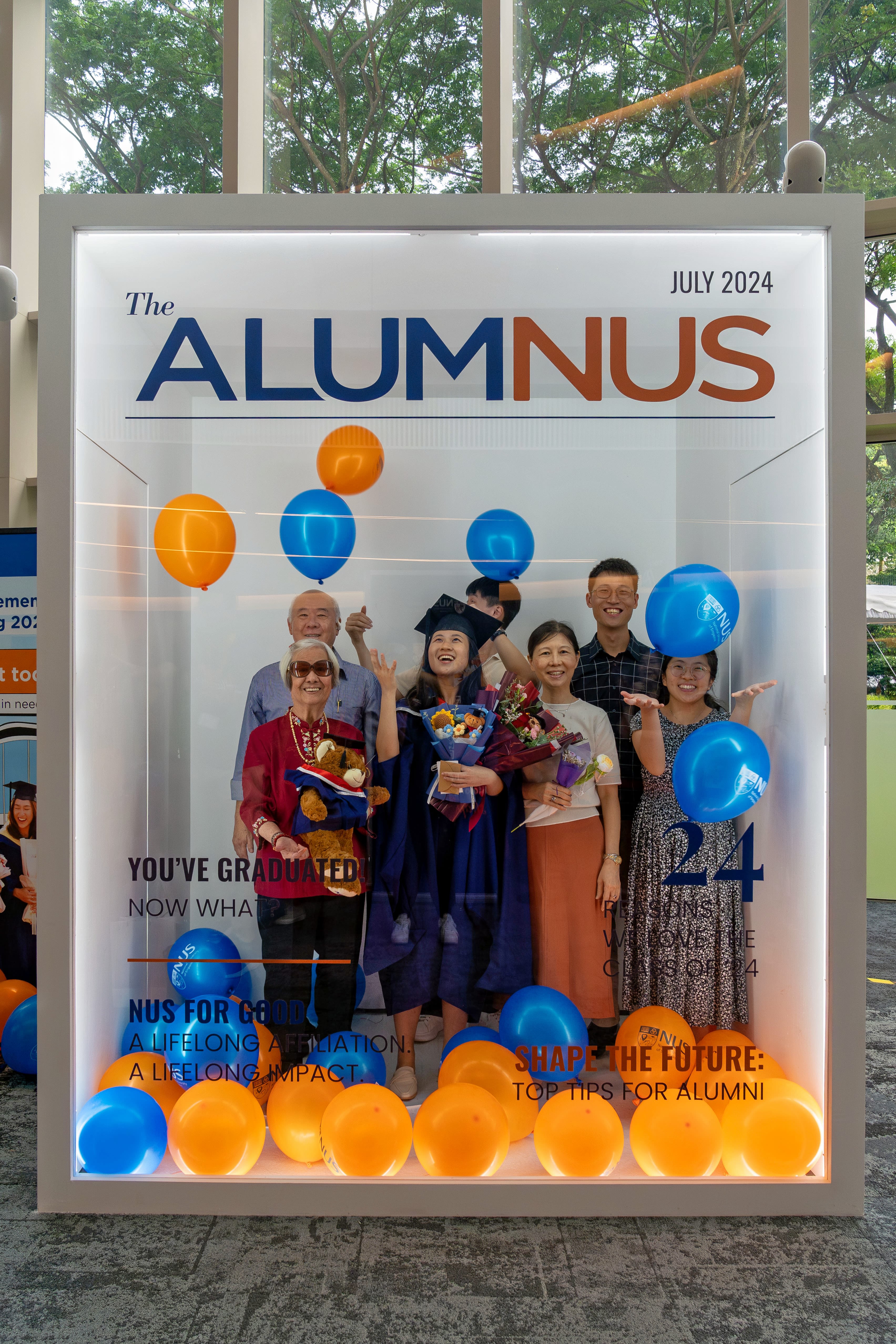 To celebrate the occasion, we brought back our popular photo booth, styled after The AlumNUS magazine. The booth gave the new alumni and their families the chance to strike a pose as cover stars.
